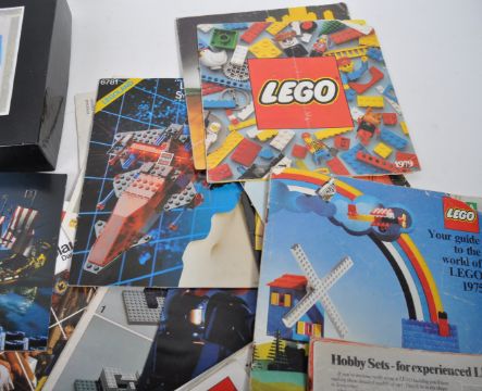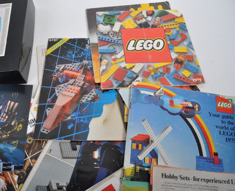 Lego Sets - Legoland Space - 6781 / 6895 - Space Police Striker and Police Spy Tank. A collection of original vintage unboxed Legoland Space sets comprising 6781 Space Police Striker and 6895 Police Spy Tank along with a large quantity of assorted vintage Lego magazines, brochures, and other instruction manuals. Interesting collection.