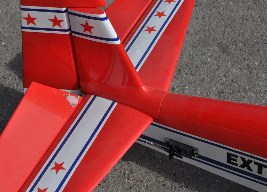 Radio Controlled Plane - a Great Planes made Extra 300 S large scale RC radio controlled model aeroplane. Appears complete, with radio gear fitted, and fitted with a large fuel engine. Well made to a high standard and finished in red and white, complete with pilot figure to the cockpit. Detachable wings. With a transmitter unit. Believed to have never been flown, and made by the late vendor for display - all parts appearing as new. Fuselage length approx; 142cm long.