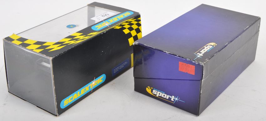 Two original Hornby Scalextric boxed slot racing cars to include Hornby Hobbies C2265 Williams BMW N10 and Scalextric Sport Limited Edition C2335 BMW Williams F1. Both models appearing mint, still attached to inner display stands and within original boxes.