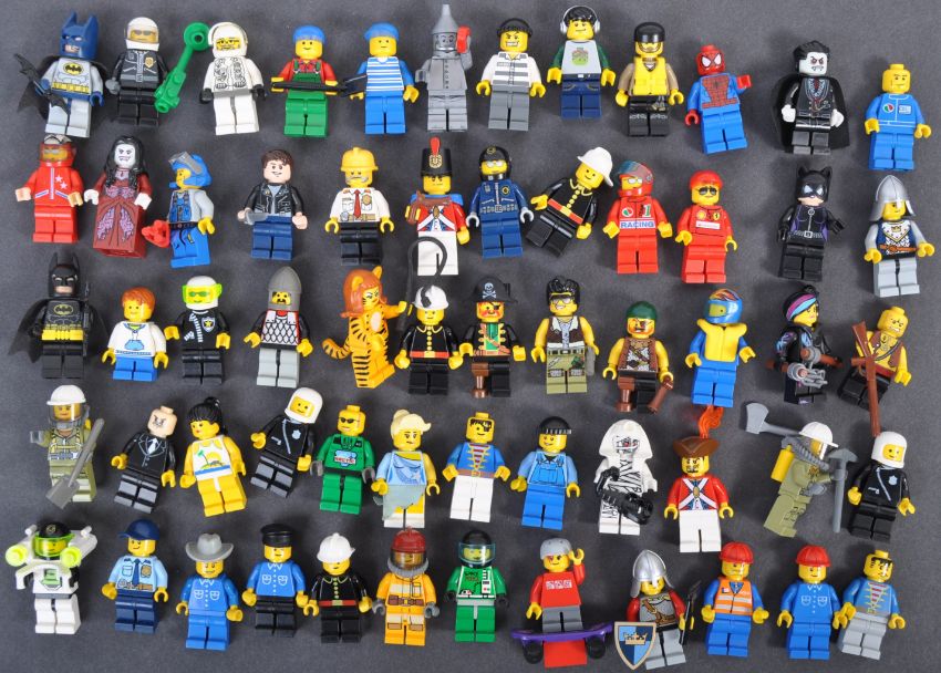 Lego - a large collection of approx x60 official Lego made minifigures. Figures from various themes present to include; Batman, Super Heroes, Series, City, Lego Movie, Pirates, vintage and others etc. Some with accessories / weapons.