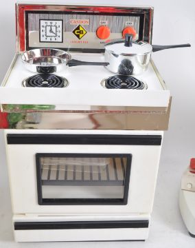A charming collection of vintage boxed traditional children's toys to include Jones Meccano sewing machine, Hero accordion, Casdon Cash Register, Casdon Cooker, Chad Valley washing machine and a Marx Kiddie Tune Lumar Toy gramophone. All in original boxes. Good collection