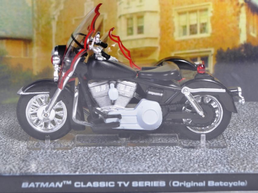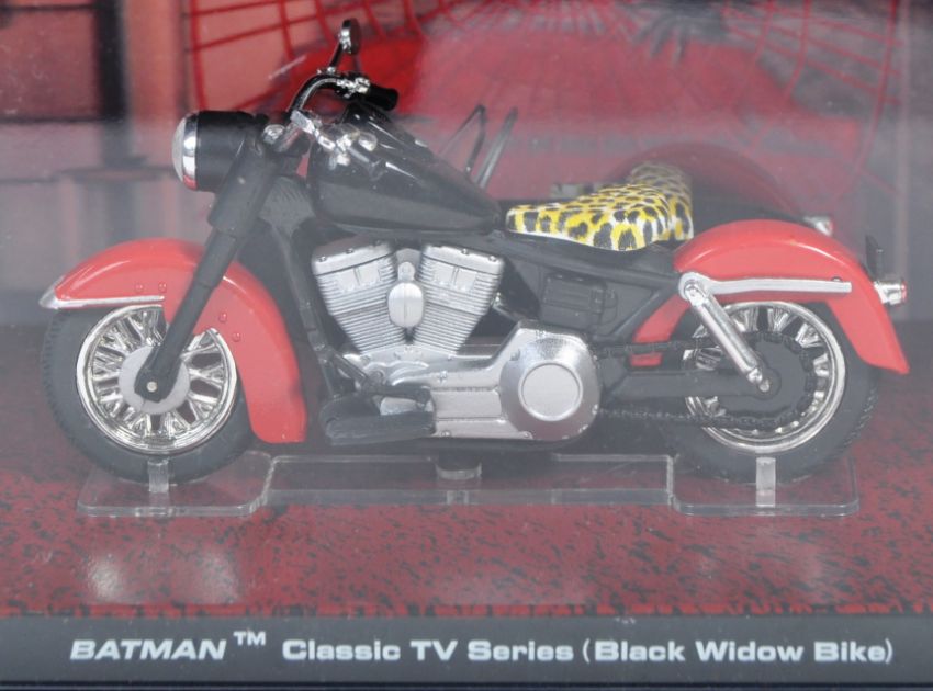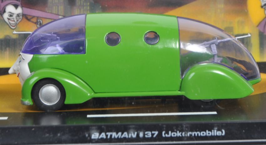 A collection of x8 original ' Batman Automobile Collection ' diecast model vehicles all relating to Batmobile vehicles that have been seen in the DC comics, television, and movies. Models to include Legends of the Dark Knight Batcycle, Classic TV Series Batcycle, Jokermobile, Robin Bike, Red Bird, Black Widow Bike and others. All models appearing mint and mounted on diorama bases with 3D backdrops inside perspex display cases. Highly detailed models