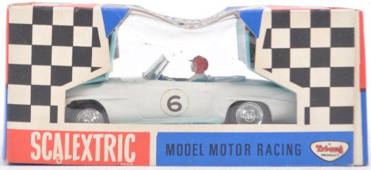 An original vintage 1960's Triang / Tri-ang made Scalextric 1/32 scale slot racing car C175 ' Mercedes 190SL ' In white with white #6 decal and red driver. Model in very good condition within near mint original window box.