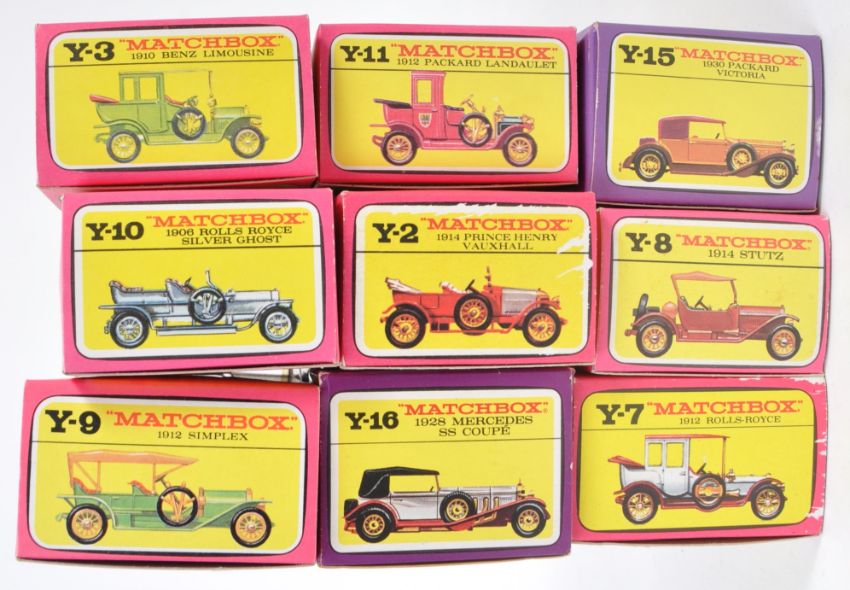 A collection of x10 original vintage Lesney made Matchbox Series Models Of Yesteryear boxed diecast models - including Y-7, Y-10, Y-9, Y-2, Y-4, Y-3 and others. Most models appearing mint, within good to near mint original boxes. Some likely unused stock. Great collection.