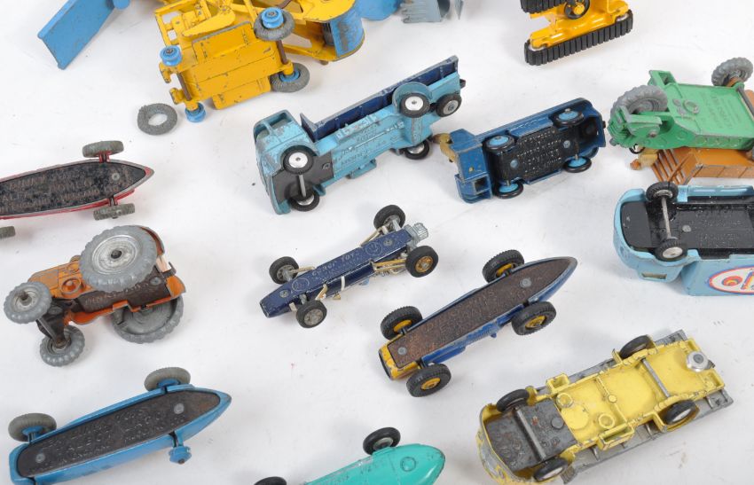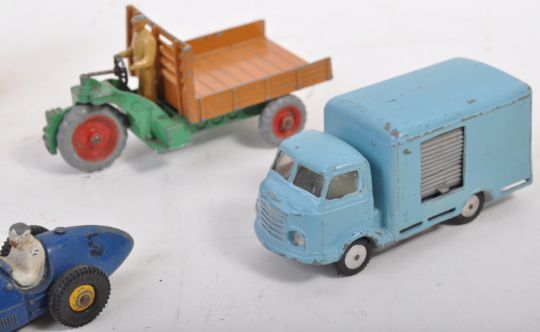 A collection of x13 assorted vintage Dinky Toys and Corgi Toys diecast model cars and other vehicles comprising Dinky 301 Field Marshal, 27G Motocart, 232 Alfa Romeo, Corgi Toys Priestman Crane, Karrier Bantam and others. Models ranging from fair to very good. Interesting assortment.