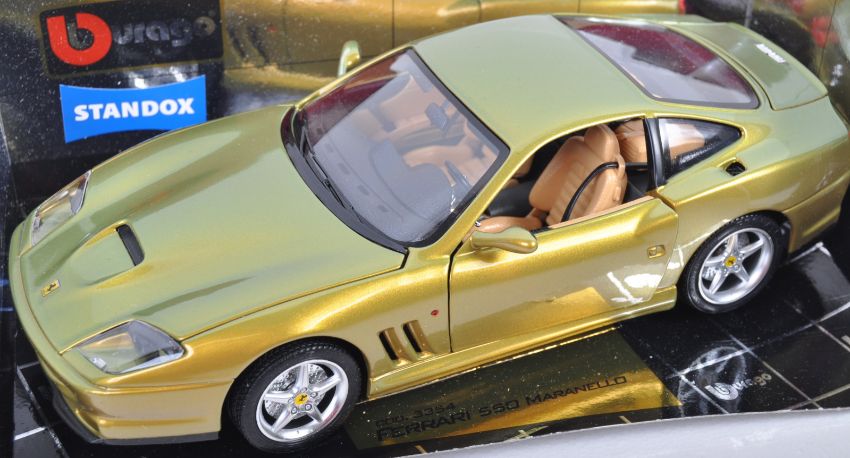 An original Bburago / Burago made 1/8 scale diecast model car No. 3354 Ferrari 550 Maranello. The car finished in a Standox Suzuka Sun paint. Housed within an associated box. Great model.