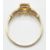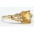 A hallmarked 9ct gold ring set with a central rectangular cut yellow stone with decorative pierced shoulders. Hallmarked Birmingham 2005. Weight 2.2g. Size U.