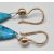 A pair of 14ct gold drop earrings having polished turquoise stone drops with gold wire hook fastenings to the top. Marked 585 to the gold, with Russian marks. Measures 4.1cm.