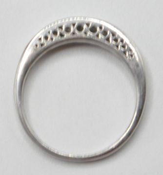 An 18ct white gold half eternity ring channel set with sven square cut diamonds. Band marked 18k. Weight 3.6g. Size N.