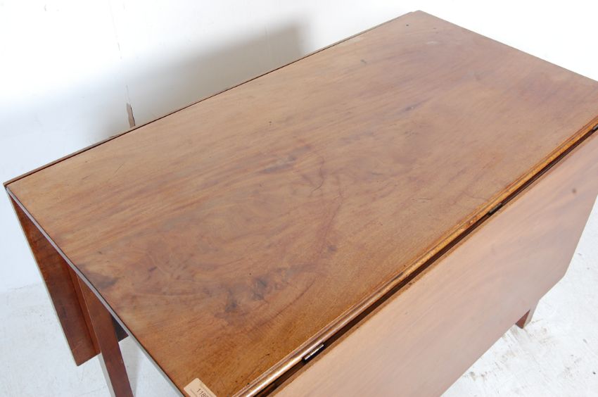 A 19th Century Georgian mahogany drop leaf dining table. They table of a rectangular form with two drop leaves to the side raised on square legs.