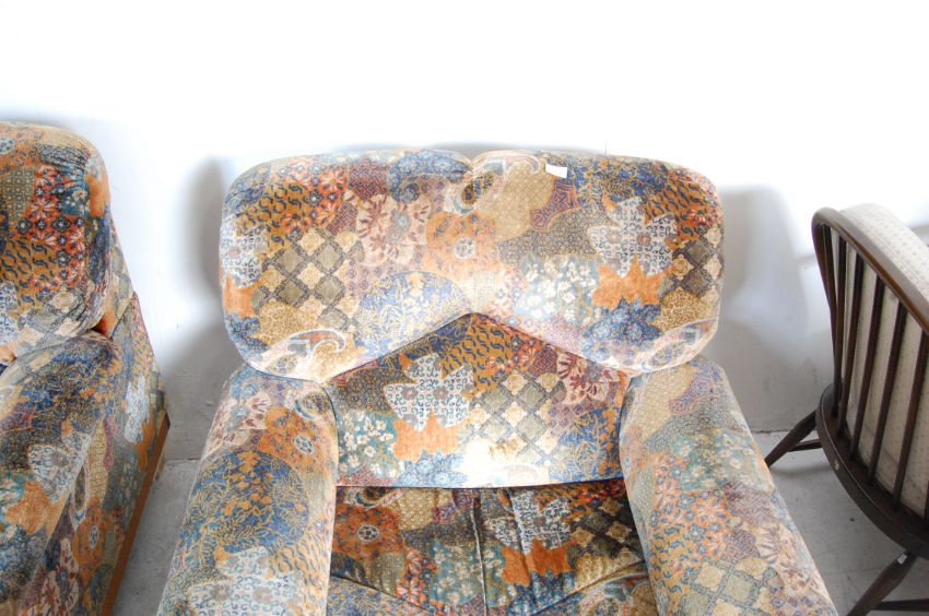 Ernest Gomme - E Gomme for G Plan Furniture - Atlantis Range - A retro vintage rare and original  pair of armchairs in the original viscose pile fabric. Each  having a teak wood show wood frame. Matching 3 seat sofa also available in lot 1060a
