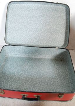 A collection of seven vintage 1960s mid 20th century suitcases comprising of examples in brown, blue, red and black. Largest measures