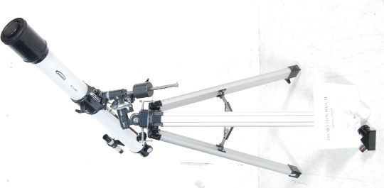 A 21st Century Zennex 900 x 70 telescope having a white body complete with tripod and original instruction manual.