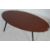 A retro vintage style late 20th century surfboard teak wood coffee table of oval form raised on angular ebonised legs with brass castors. Measures, 38 cm H x 120 cm W x 60 cm D