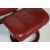 A contemporary Ekornes Stressless leather reclining armchair and matching ottoman footstool being upholstered in a maroon leather fabric. All raised on shaped faux wood bases with Stressless adjustable stamped handles.