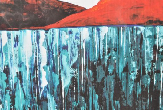 Steve Capper (British 1944-) Northern Reservoir. A 20th century mounted print of an abstract oil on board by Steve Capper. Measures 50cm x 46cm.
