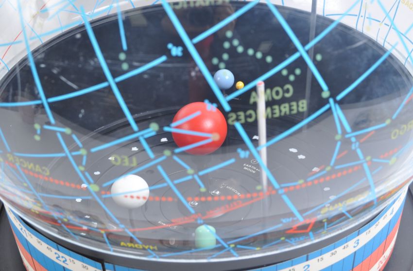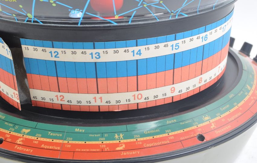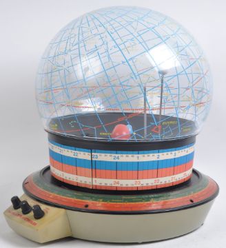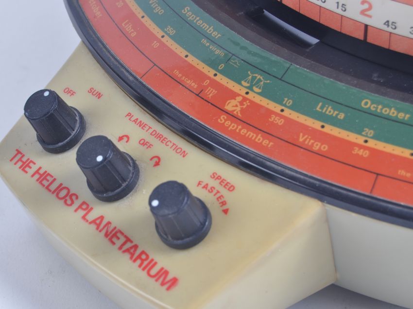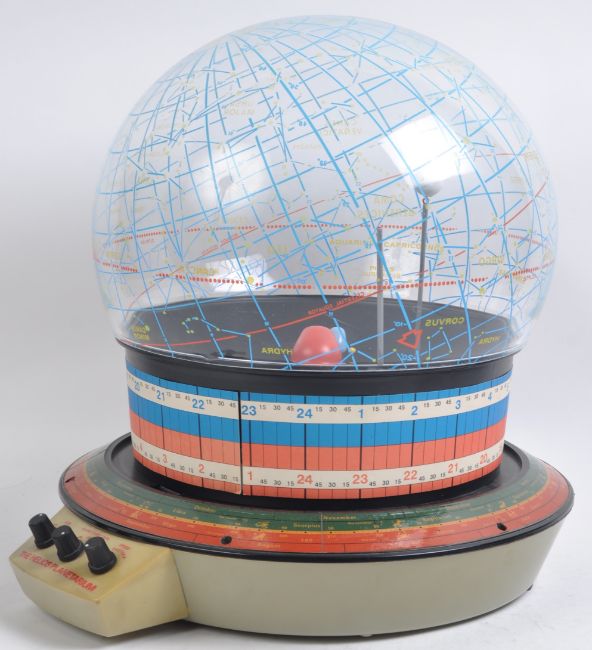 The Helios Planetarium - 1970s - an original retro vintage Helios made ' Planetarium ' astronomy desktop / table top globe. Battery operated, with various attachments present. Dial panel to front for operation. With original instruction booklet. Measures approx; 41cm tall.