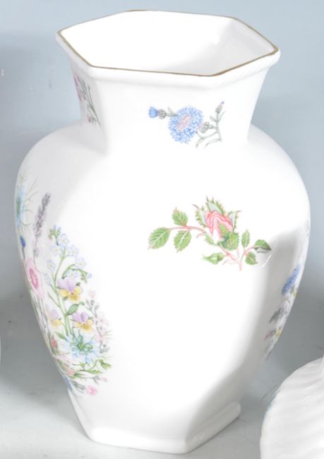 A collection of 20th century Royal Worcester fine bone china ceramic ware and Aynsley fine bone china ceramic ware. The collection include Aynsley ceramic clock, vase, lidded pot, plate, pin tray, etc along with two Royal Worcester - The Birds Of Dorothy Doughty Dessert Plates - Paradise Wydah - Blackburnian Warbler & Western Hemlock along with a small lidded pot and a trinket box. All with makers mark to the underside.