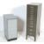 Two retro vintage industrial factory metal filing cabinets of upright form. One Bisley filing cabinet has a bank of five drawers raised on metal supports painted in a grey colourway. The other cabinet has a bank of twelve drawers painted in a dark green colourway raised on metal supports.  Measures, 101 cm H x 28 cm W x 41 cm D