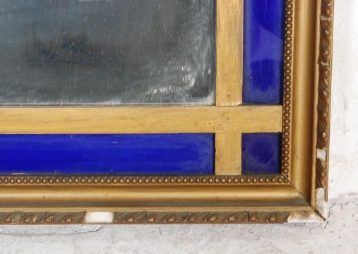 WITHDRAWN. A vintage 20th century gilt framed mirror having a central glass plate surrounded by blue Venetian style panels.