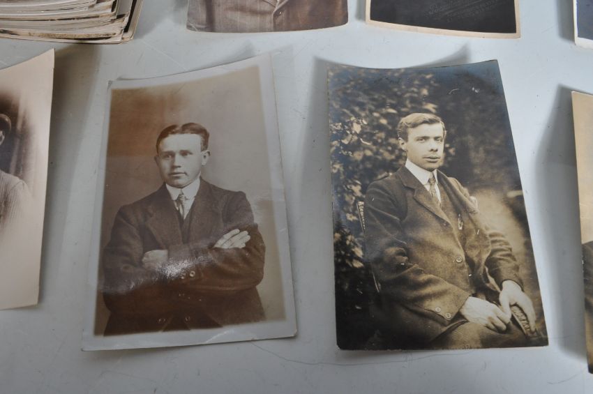 MEN on postcards - Antique / vintage real photographic. All (500) with postcard backs showing males. Vast range of attire/hairstyles etc through the years. Generally amateur photos or studio portraits but non-commercial. Interesting " Social History " study.