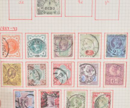 GREAT BRITAIN collection of stamps. Starts with 1840 1d Penny Black through to 1990s. Mint & used, Defins (with QV to 1/-), High Values, Commems, Regionals, Postage Dues etc neatly written up in four albums.
