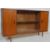 A retro vintage 1960s mid century teak wood bookcase cabinet vitrine having central glazed sliding doors flanked by cupboards opening to reveal a shelved interior raised on tapering legs. Measures, 78 cm H x 137 cm W x 23 cm D