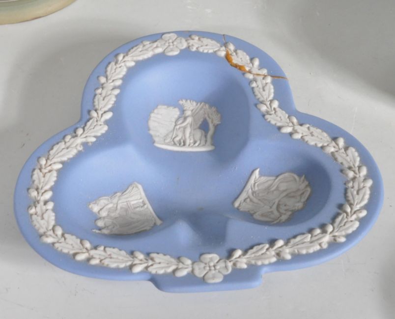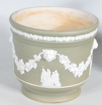 A collection of vintage 20th century Wedgwood ceramic items comprising of jugs, trinkets pots, dishes and more. The collection is in a sea green with neo classical scenes throughout. Some small signs of wear and tear commensurate with its age. Measures 12cm high.