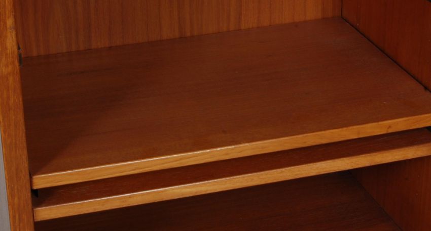 A vintage retro 20th century Danish inspired teak wood music cabinet  / entertainment cabinet having multiple pigeonhole for various Hi-Fi equipment.