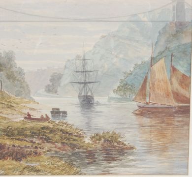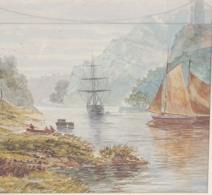 W. R. Whitby - A large watercolour painting depicting Clifton Suspension bridge from Hotwells with the view looking down the Avon Gorge with boats on the river with the New Inn. Signed to the lower corner and dated 1883. Framed and glazed.