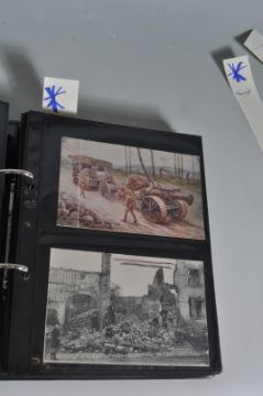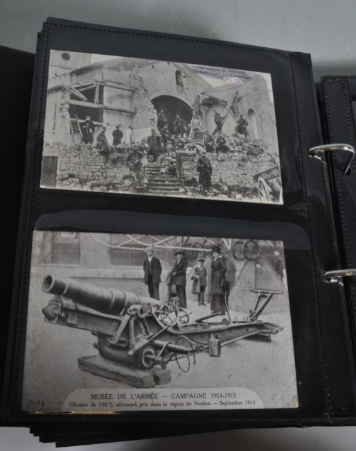THE GREAT WAR 1914-18 WWI. Collection of original postcards (600+) in three albums depicting mostly land based scenes from the European war. Shows front line, wrecked buildings, bomb damage (some before & after), bombardment of towns/villages, The Somme etc. Devastating views of great historical interest.