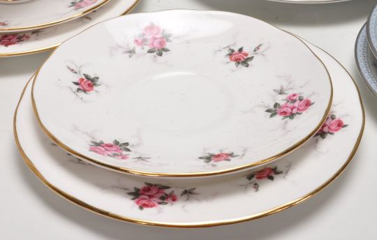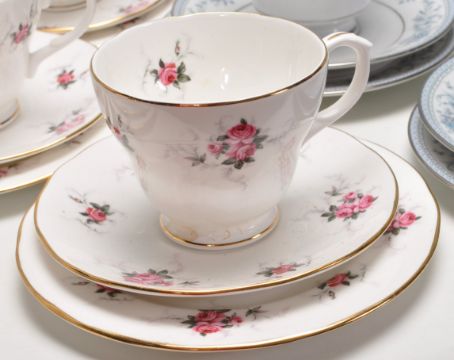 Two vintage retro part tea services to include a Diane blue floral tea service with tea pot together with a Duchess rose chintz pattern tea service. Makers marks to the bases of both. 19cm high