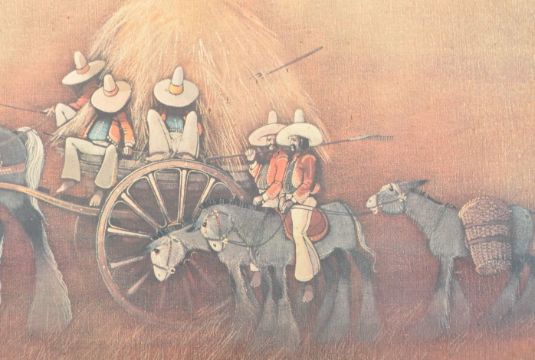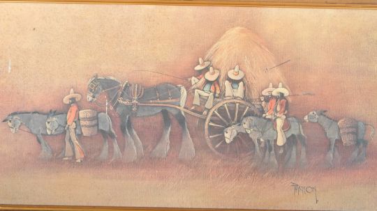 Colin F. Paynton (1946-1972) - The Hay Wagon - A retro vintage 20th Century 1970's oil painting print of rectangular form entitled 'The Hay Wagon'.The lithographic print set within a wooden frame. Measures 52cm x 98cm.