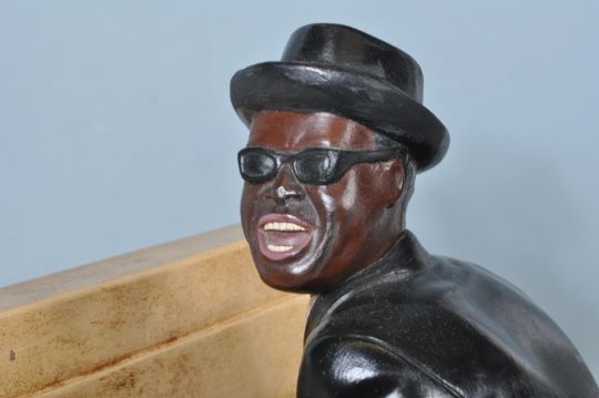 A large vintage 20th century chalk vintage polychrome Jazz Piano player figurine / sculpture. In the manner of Esco chalkware. Measure 45cm high. Signs of wear and tear commensurate with its age.
