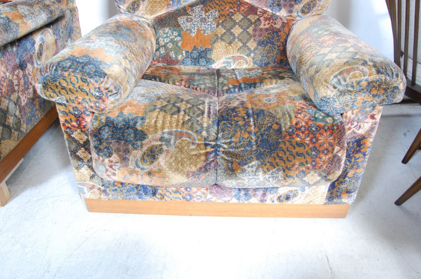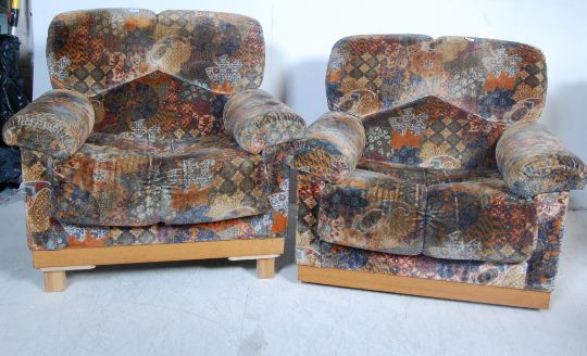 Ernest Gomme - E Gomme for G Plan Furniture - Atlantis Range - A retro vintage rare and original  pair of armchairs in the original viscose pile fabric. Each  having a teak wood show wood frame. Matching 3 seat sofa also available in lot 1060a