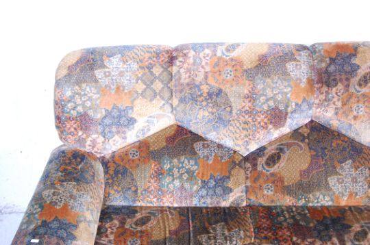Ernest Gomme - E Gomme for G Plan Furniture - Atlantis Range - A retro vintage rare and original Atlantis three seat sofa settee in the original viscose pile fabic having a teak wood show wood frame. Matching 2 armchair also available in lot 1062a. Measures 78 x 196 x 87cm.