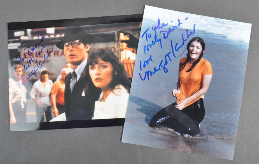Estate of Dave Prowse - Superman - Margot Kidder 1948-2018 (Lois Lane) - two autographed photographs of the actress, comprising: a glamour shot signed ' To The Lovely David ' in blue ink, and the second a still from Superman signed ' For David, With Love '. Mr Prowse trained Christopher Reeve during production. Both signed in blue ink. Obtained personally by Mr Prowse.