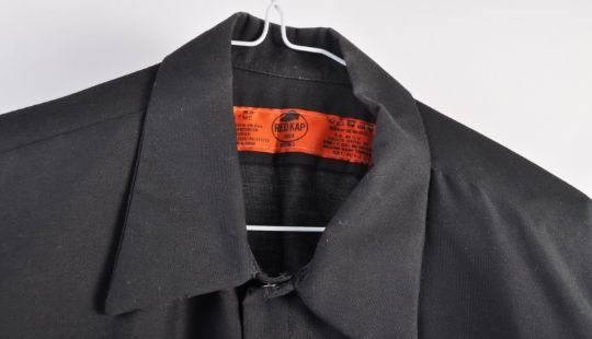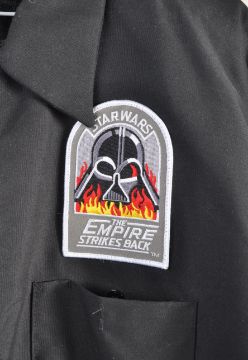 Estate of Dave Prowse - Star Wars - Mr Prowse's personal Empire Strikes Back 30th Anniversary worn shirt. Black, with short sleeves, the shirt features an embroidered patch with Empire Strikes Back notation and embroidered ' 30th Anniversary 1980-2010 ' to breast. Size XL. Made by RedKap. Used, but generally in very good condition.