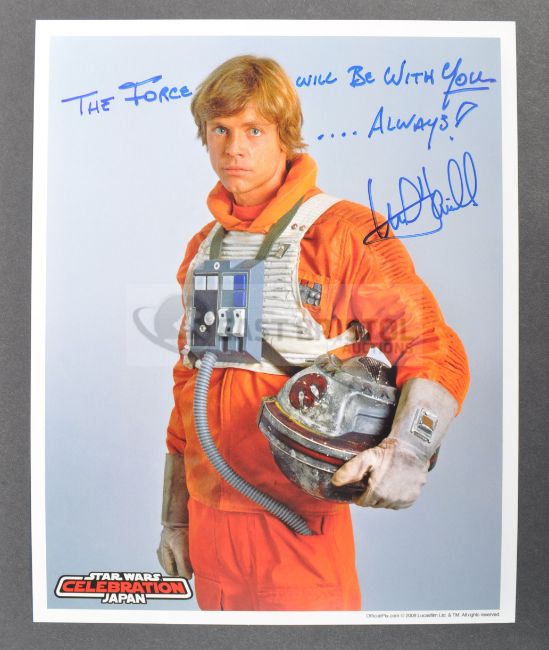Estate of Dave Prowse - Star Wars - Mark Hamill - an autographed 8x10" Official Pix photograph of Luke Skywalker from Celebration Japan. Signed in blue ink by Hamill to a light portion of the image, with quote ' The Force Will Be With YOU.... Always!'. Obtained in person by Mr Prowse at the Japanese event. Incredible high quality photograph.
