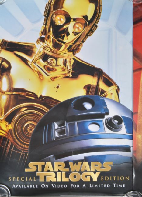 Estate of Dave Prowse - Star Wars - set of x3 original Special Edition Star Wars Trilogy VHS promotional advertising posters. The first showing Leia and Luke, the second featuring R2D2 and C3PO and the third showing Darth Vader. All rolled. Each approx; 71x50cm