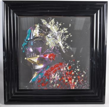 Estate of Dave Prowse - Star Wars - Fan Artwork - an unusual artwork piece depicting Darth Vader, with glitter segments atop the glass to the frame. Professionally framed and glazed. Artist unknown. Measures approx; 55x55cm.