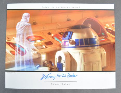 Estate of Dave Prowse - Star Wars - Kenny Baker 1934-2016 (R2D2) - an official SeeTwo / Official Pix Celebrity Autograph Series 11x14" high quality photograph signed by Baker in blue ink to the signature strip, with character name. Undedicated. Impressive image from the franchise.