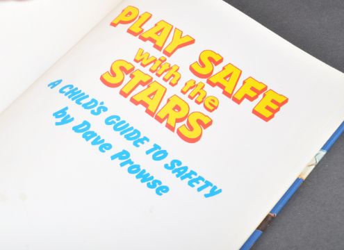 Estate of Dave Prowse - Play Safe With The Stars by Dave Prowse - an original 1981 children's annual ' A Child's Guide To Safety ' based around The Green Cross Code Man as performed by Prowse. The annual featuring artwork relating to many television shows of the period including Fawlty Towers, The Goodies, Doctor Who etc. Some of the puzzles have been filled out in an unknown hand. Personally owned by Mr Prowse.