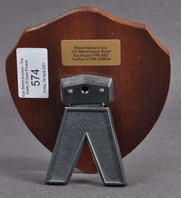 Estate of Dave Prowse - Star Wars - an original award trophy as given to Mr Prowse by the Mersey Sci-Fi Club. The trophy of wooden construction in the shape of a shield having the text ' Mersey Sci Dave Prowse 1999 ' on a metal plaque. Measures approx 13cm.
