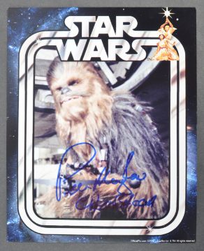Estate of Dave Prowse - Star Wars - Peter Mayhew (1944-2019) - Chewbacca - autographed Official Pix Star Wars Lucasfilm Ltd 8x10" colour photograph of Mayhew as Chewbacca. Signed in blue ink to the centre, with character name. Obtained personally by Mr Prowse.