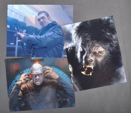 Estate of Dave Prowse - Spencer Wilding (Welsh Actor) - collection of x3 autographed 8x10" colour photographs from various appearances of Wilding. Includes a Guardians Of The Galaxy Image signed ' To Dave So Nice To Meet You ', the other two autographs undedicated. All obtained personally by Mr Prowse. Interestingly, Wilding would go on to play Darth Vader in the Star Wars spin-off Rogue One.