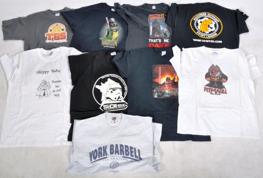 Estate of Dave Prowse - a collection of x10 Star Wars / Convention themed T-Shirts - all XL and all obtained by Mr Prowse from various personal events. Some have been worn, others have been unused. All have been washed.