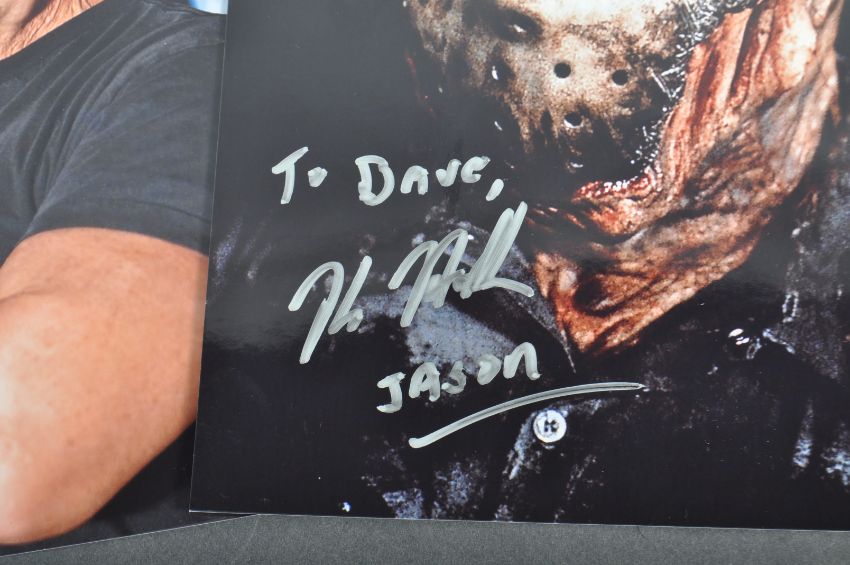 Estate of Dave Prowse - Friday 13th - Jason - Kane Hodder - two autographed 8x10" colour photographs one of Hodder in costume as Jason, the other a headshot. Both signed in silver ink and dedicated ' To Dave '. Obtained personally by Mr Prowse.