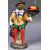 An antique 19th Century cold painted spelter metal figural pin cushion in the form of a court jester or bard with painted traditional attire holding a pin cushion to one hand and mandolin to the other. Measures approx; 14cm tall.