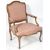 An antique 19th Century French walnut framed open fauteuil armchair having a patterned floral upholstered backrest with stud detailing and show wood walnut frame with sweeping armrests. The chair having a padded seat rest with all being raised on sweeping scroll supports. Measures approx; 95cm x 65cm x 54cm.